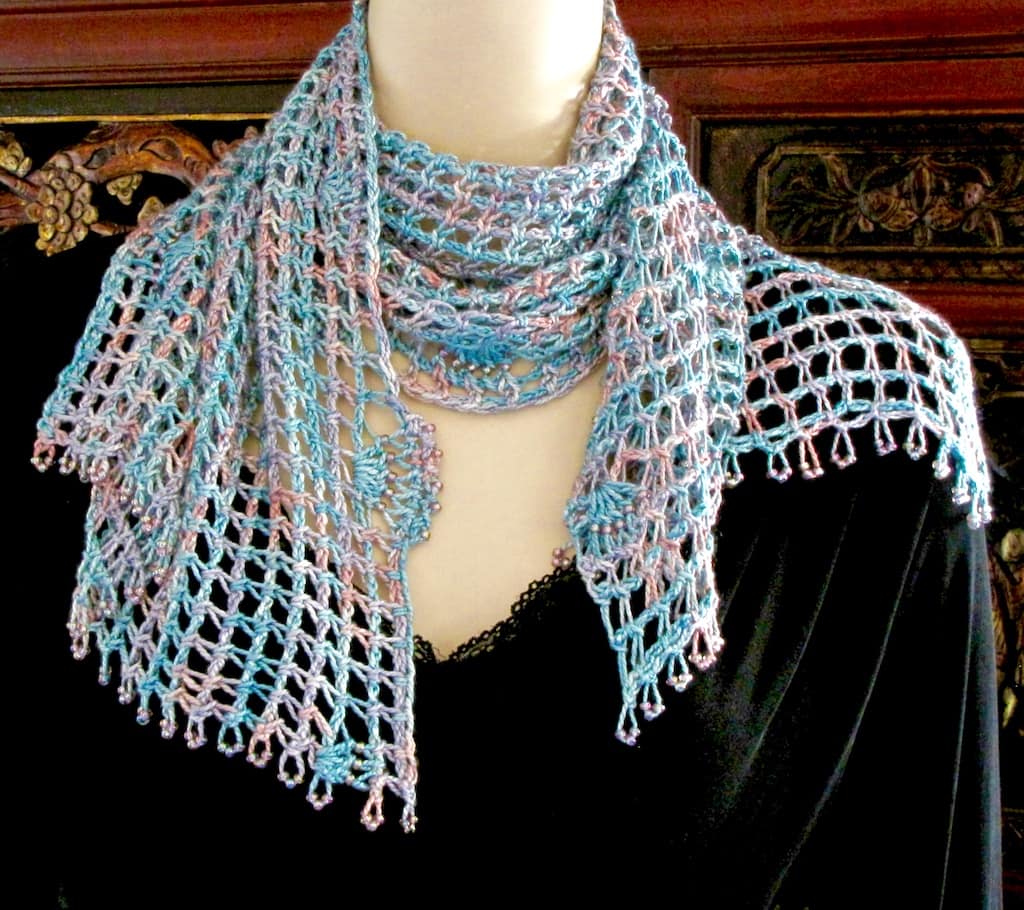 - Spoonbill Panel Scarf; Tunisian Spoonbill