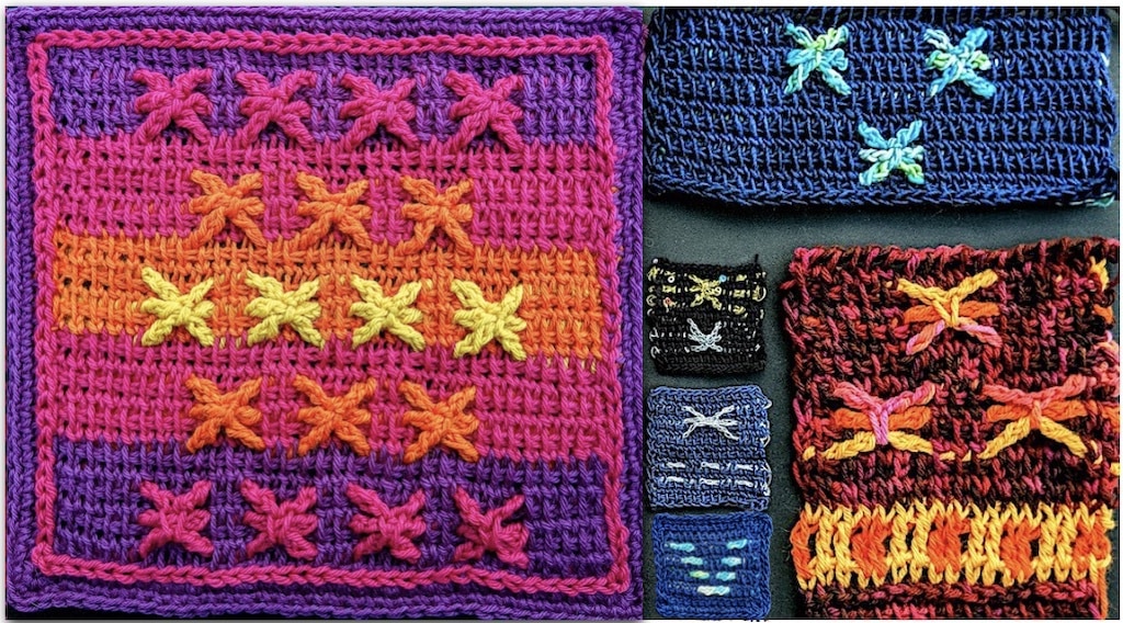 - New mosaic–overlay–intermeshed types of colorwork with Tunisian get a boost from extended stitches. See my recent Embossed Stars post.